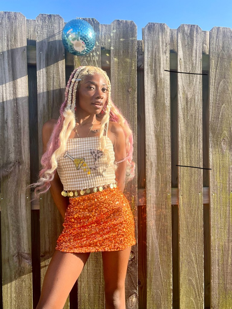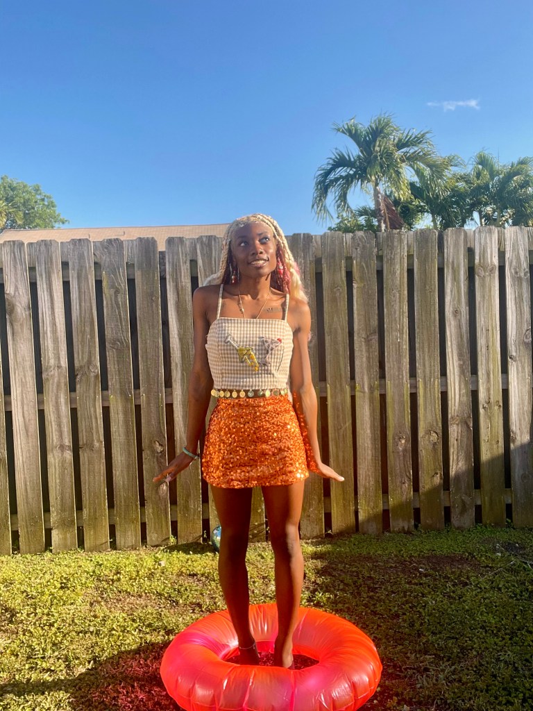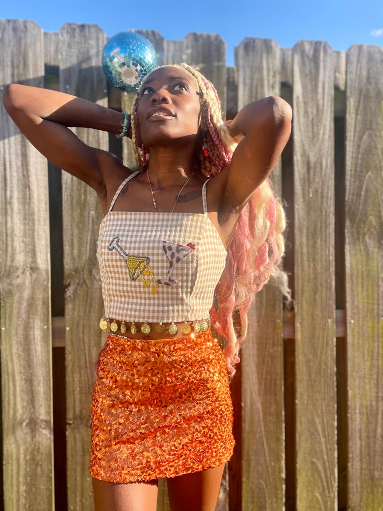 Play with being seen in this gingham stretchy elastic top with adjustable straps.