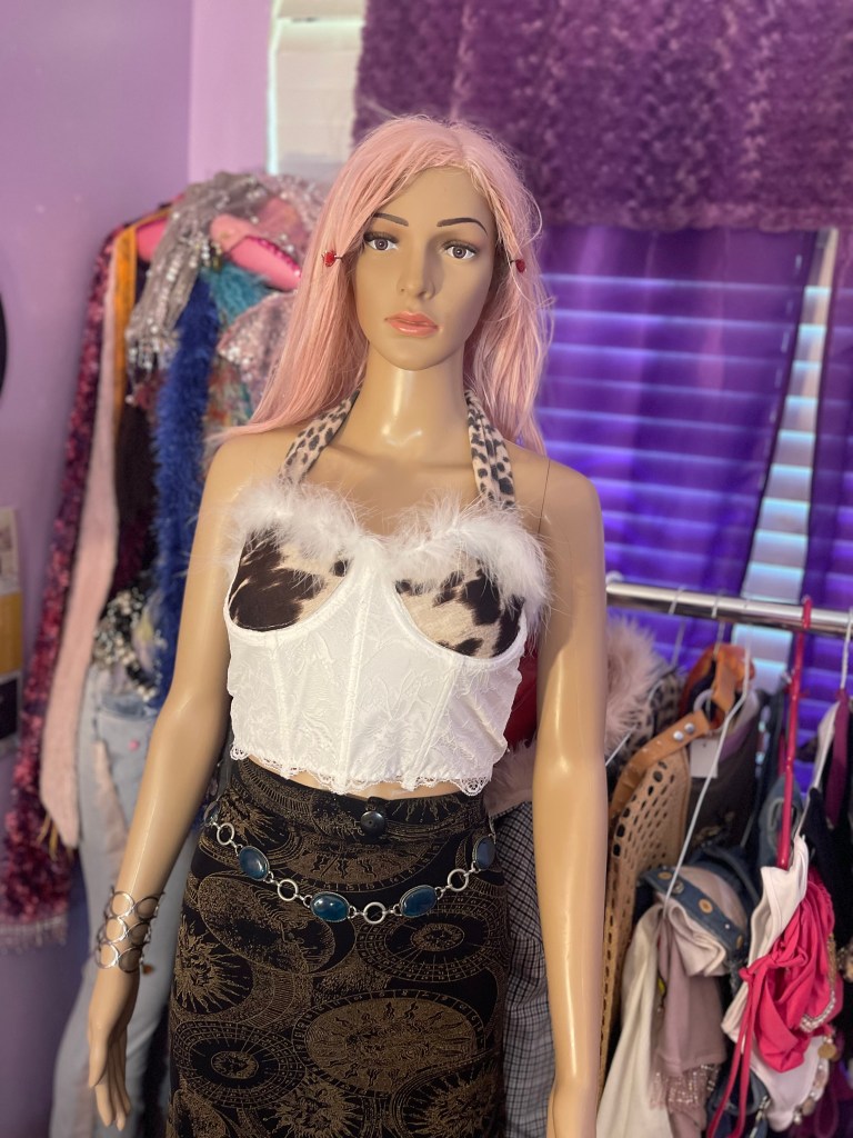 The stretchy knit leopard halter straps and velvet cow print bustier cups feel like an imagination just came to life. Literally.